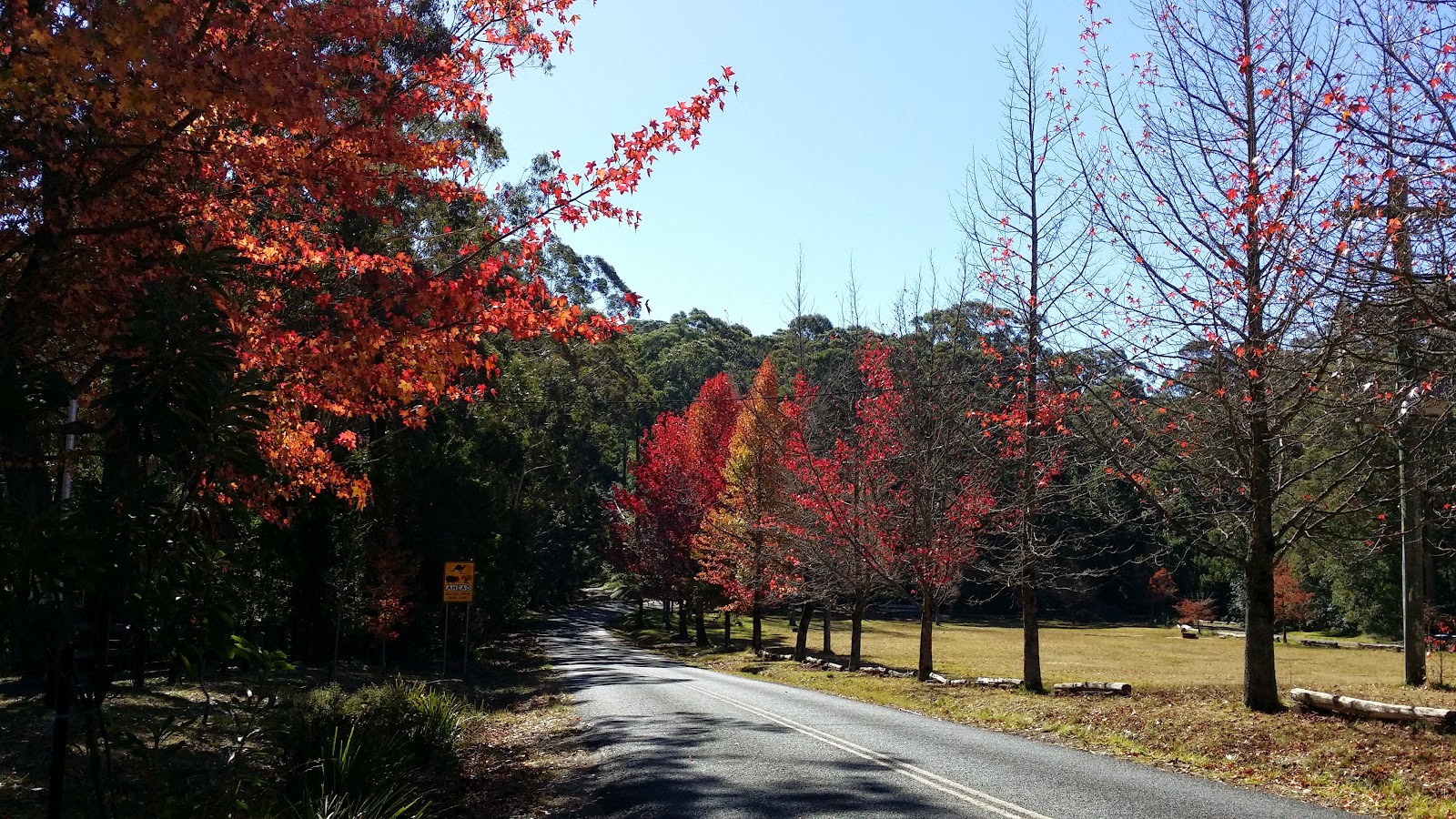 今天是結婚紀念日,所以沒有去打波,偕老伴遊藍山。有朋友說別老是叫老伴,你老婆不算老。可是,我想不到更好的叫法。所謂少年夫妻老來伴,這是老伴稱謂的由來。老伴可以是長久的伴侶,也不一定是年老。我叫她自己選老伴、老婆、妻子、老闆等,她自己也選老伴。秋天去藍山宜賞紅葉,今天去當然太晚了,一般最好在五月之前去Mount Wilson。近年天氣徧溫暖,有時太早去Mount Wilson因為紅葉不多會失望而回,我可以教大家一個方法。去Mount Wilson會經Bells Line of Road去,先到Richmond的遊客中心外的HawkesburyValley Road看下兩旁一兩公里楓葉的顏色,如果那些大葉楓開始變黃,Mount Wilson的紅葉就正在爭姸,如果大葉楓已枯黃,Mount Wilson就凋零殞落。