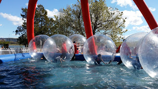上圖這水中滾球也蠻好玩的, 人爬入氣球, 然後充氣, 拉上防水拉練後, 就在水池中蹦跳3分鐘, 盛惠A$12。