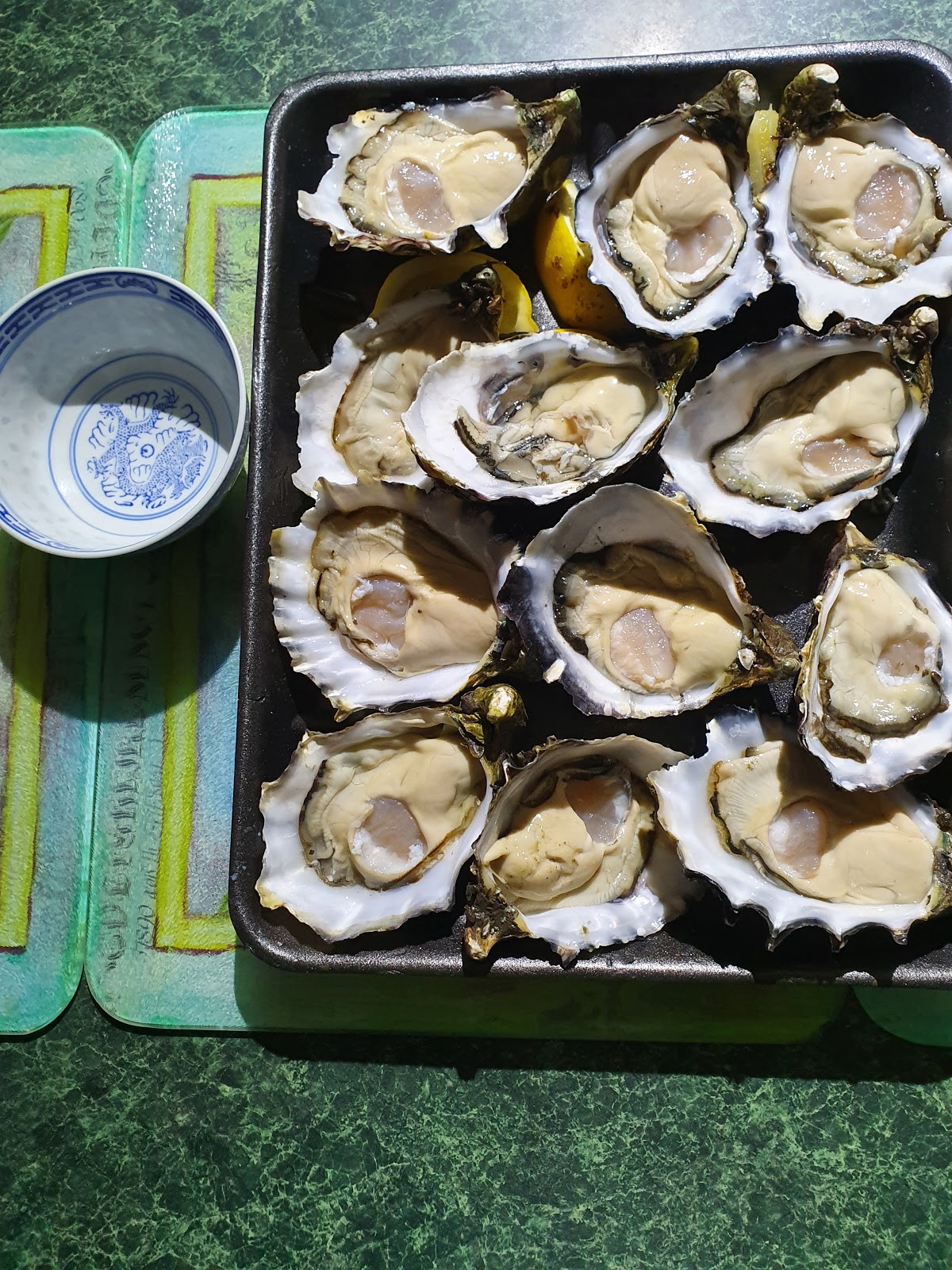 今晚除了蒸魚、蒸帶子、熟蝦、青菜及鹹排骨花生粥外, 親家在Broken Bay的蠔場買了一打大蠔送過來。Broken Bay的蠔場是離家最近的蠔場, 開車去約60分鐘內便到, 因水質問題這裏的蠔場已關閉了十年八載, 我是最近才知已重開的。Broken Bay的Pacific oyster比一般Pacific爽口, 有Sydney Rock oyster的口感, 生吃也不太差。一般Pacific oyster因為太稔, 也不甘香, 吃起來像吃豆腐, 所以宜蒸或酥炸, Broken Bay的稍為好一點。