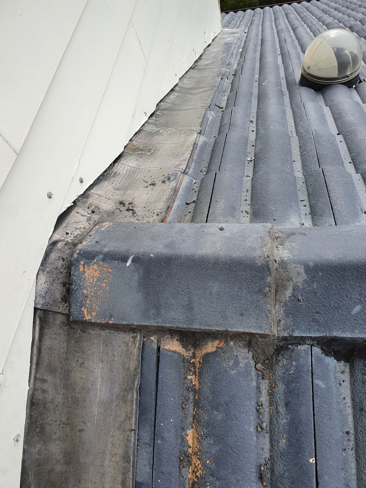 先移走一片屋脊瓦, 鋪好鉛片後才放回去, 然後用pointing補縫, 這些我做得來。