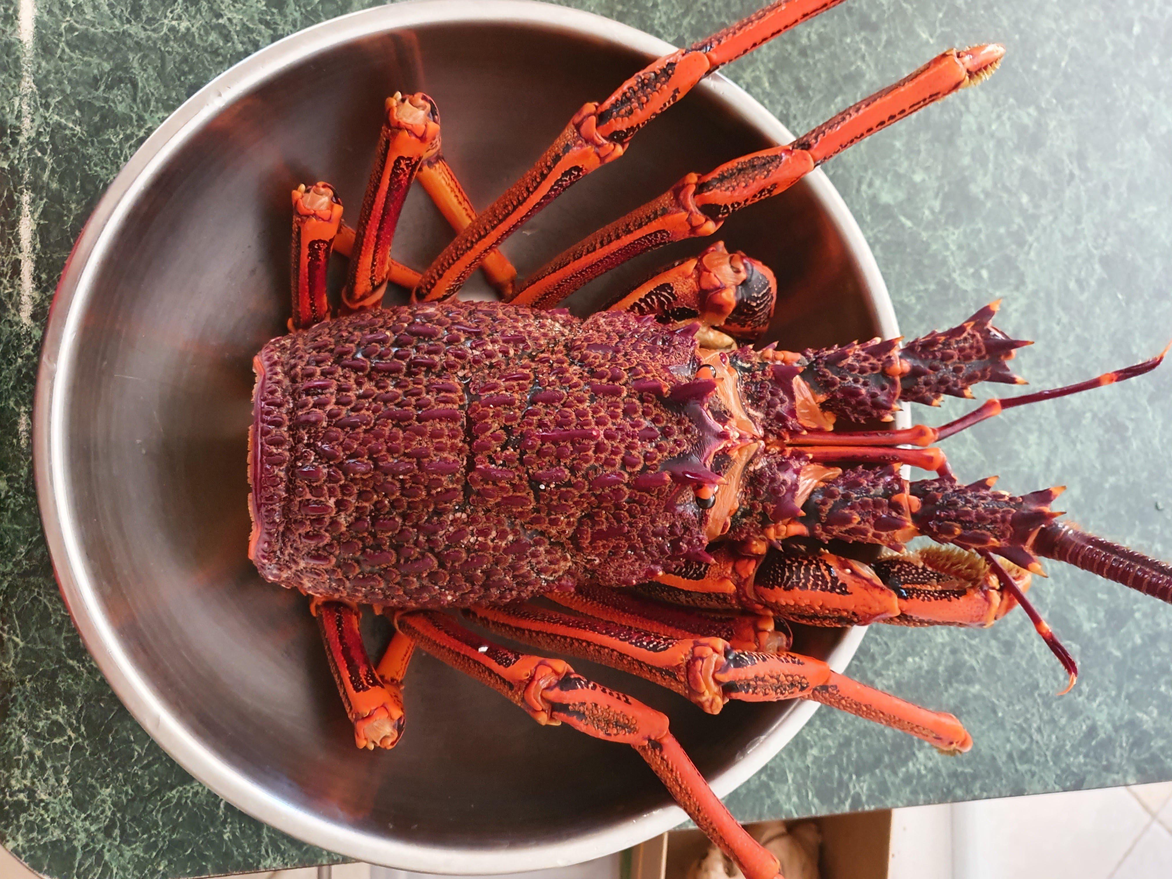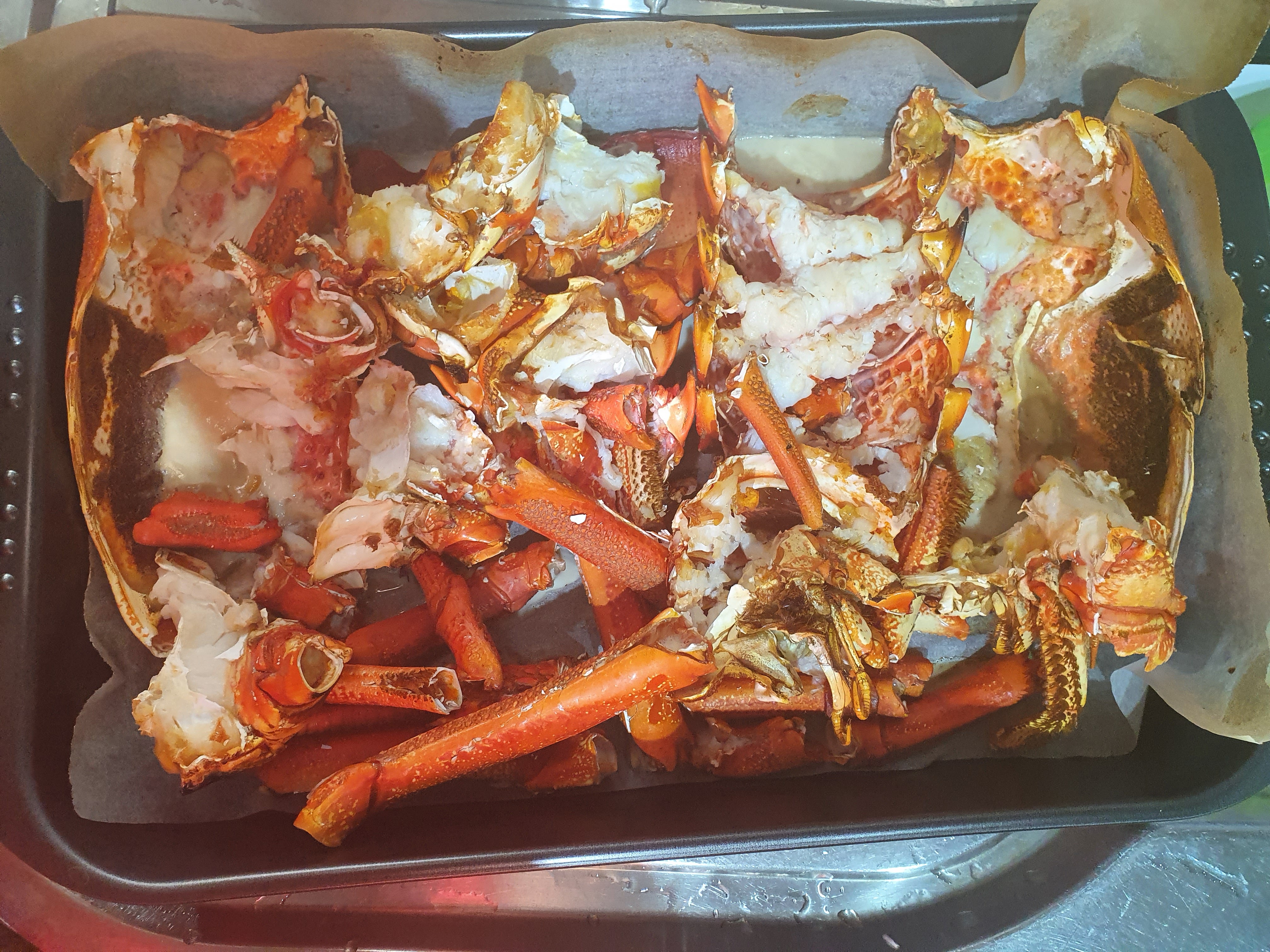 我這標題不是講政治, 雖然有屠龍小隊越境被拘, 容易惹人聯想我在談他們, 不過, 屠乜鬼龍呀, 幹殺人放火的勾當, 去到那裏都是逃犯, 一點也不馨香。 我講的屠龍是這個: 先拿了兩條毛巾分別包住龍蝦頭尾, 準備把它扭至身首二處, 可是它實在太結實了, 我用盡氣力, 也動不了它的毫毛, 還不斷掙扎用觸鬚來反刺我。屠龍正確做法是先以冰鎮, 把它凍至半死, 然後用刀尖插入頸位割開連繫的軟殼, 但我懶得去買一大袋冰回來, 惟有硬闖。 一秤之下這龍頭淨重2公斤, 龍尾連殼只有0.75公斤, 其他是流走了的液體。於是就炮製了3味吃法來: 刺身、露筍炒及面豉湯。 煮湯是先烤後煮的, 烤的時候火不能太猛, 因為蝦殼易焦, 燒焦了就麻煩。家中沒有fresh cream, 否則就拆肉做西式的龍蝦湯。