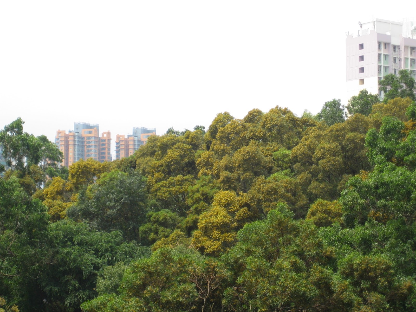 當然我家所見祇是市區一角,真正的美景在郊野之中,朋友傳來嘉道理農場的影像,眾多台灣相思樹一起開花,場面壯觀,再加上春夏之際漫山樹木深淺各異的綠,以及最近開始開花的藍花楹,拼湊出醉人的仙境,自然的美來得似乎毫無章法,其實反映了億萬年演化的深厚底蘊,處身其間,人自得其樂,全是直覺,不用甚麼學問或研究,因為這是自然,自然而然!