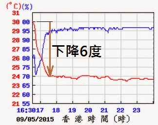 | 五時前後長洲氣象站氣溫下降6度 |
