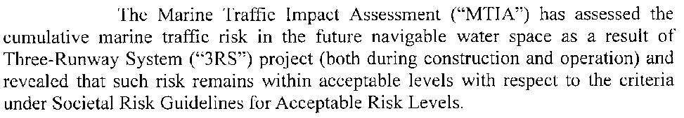 來信沒有直接回應,只說機管局有與深圳相關持份者溝通,更驚人的是這些溝通的目的是 “with a view to ensuring the smooth operation of maritime traffic”「保障海上交通順暢運作」,而不是保障赤鱲角機場飛機升降的安全!