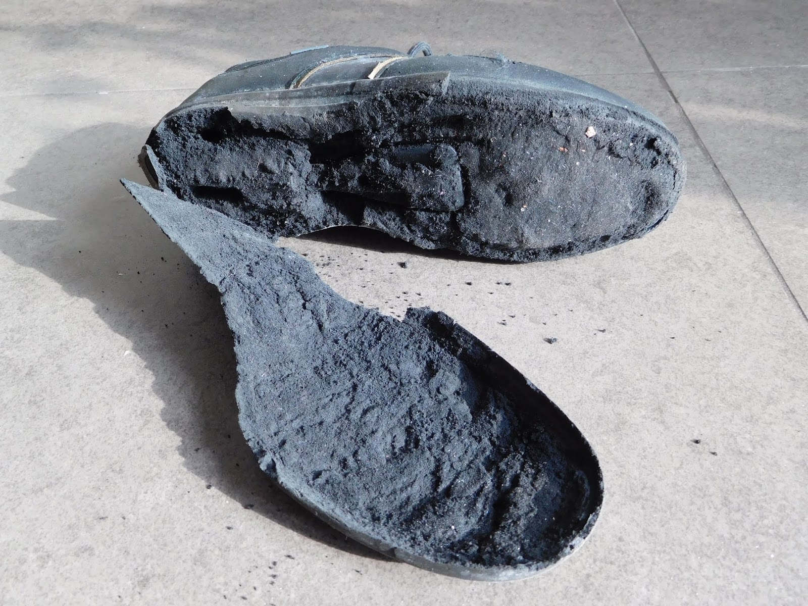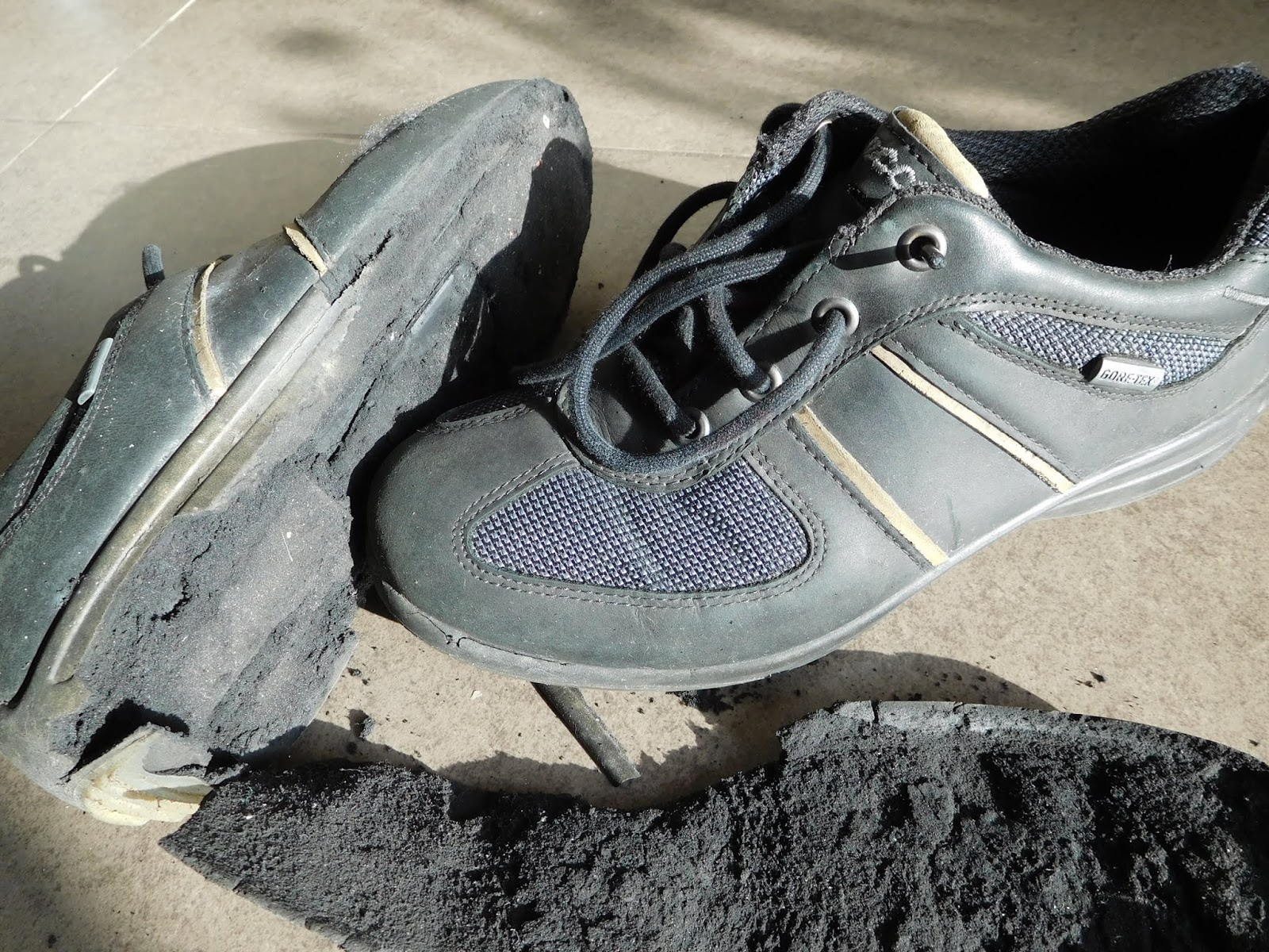 令人氣結的是鞋面完整無缺,如今空有所謂Gortex功能也無用武之地,我們年青的時代鞋底比鞋帶耐用,經常要換鞋帶,現在鞋帶比鞋底耐用,這個世界似乎很荒謬!