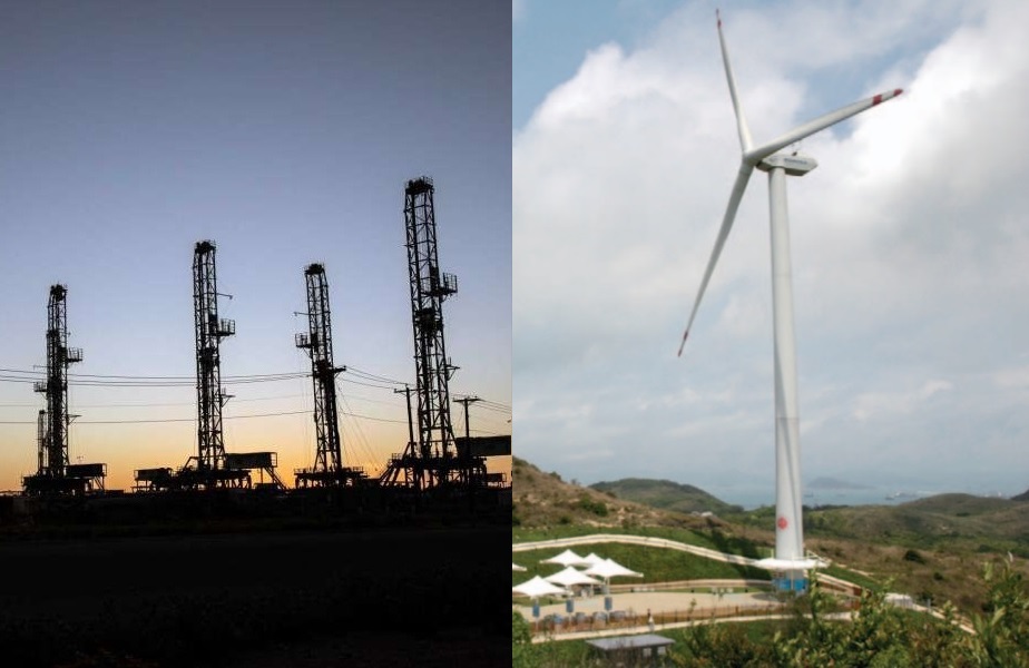 時代轉變:石油減縮,可再生能源擴充(右圖:南丫鳥風力發電)