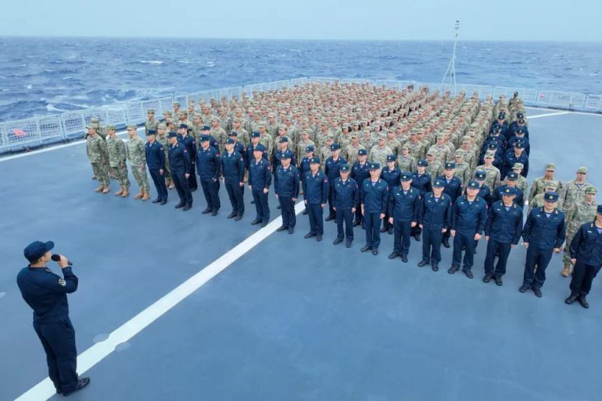 连日来 开展海上综合实习训练的 海军83舰编队 一路劈波斩浪 全体任务官兵通过系列仪式教育 感受航海文化,提升职业素养 此前 在途经祖国最南端——曾母暗沙海域时 年轻的学员们分别在 戚继光舰、沂蒙山舰甲板上 以挺拔身姿拼出“中国”二字 用行动诠释对祖国的赤诚 这是年轻官兵对祖国的深情告白 更是对祖国的铮铮誓言