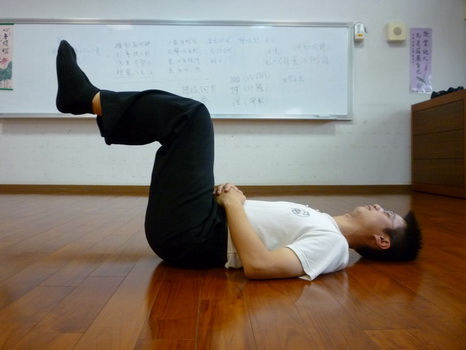 一、 在抬腳時前、後需各喝300西西溫開水,心平氣和保持輕鬆,自然呼吸、不可憋氣,靠腰力及丹田氣力來支撐身體下半部所受之酸。使身體與大腿成九十度、大腿與小腿成九十度。支撐至少十五分鐘以上。