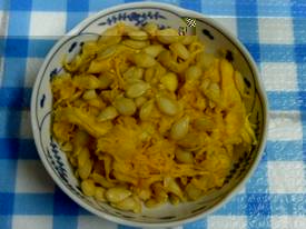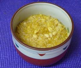 加少許的味噌. 瓜飯: 南瓜籽+薑+少許南瓜加水用調理機打汁與糙米+黃豆一起煮; 食用時,