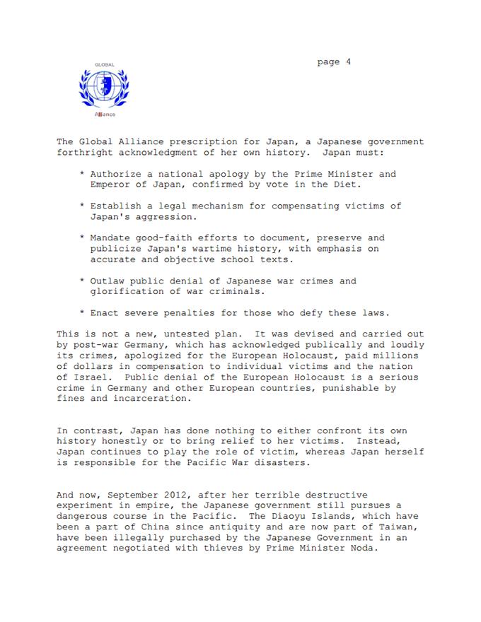 He submitted the letter to the Japanese Ambassador in DC on Tuesday 9/18/2012.