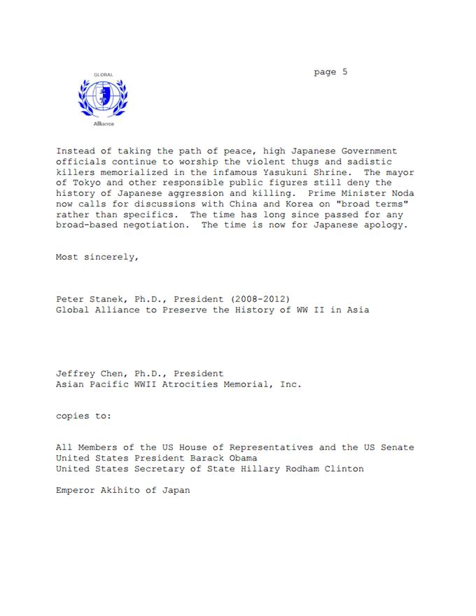 Stanek wrote to Japanese Ambassador in DC on Sept 18 2012