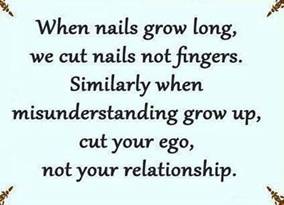 指甲長了,剪指甲,不是剪手指。同樣地,誤解增加時,減你的自尊,不是剪情誼。