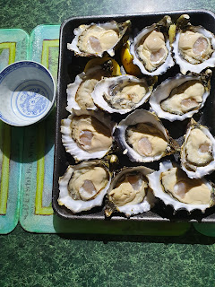 今晚除了蒸魚、蒸帶子、熟蝦、青菜及鹹排骨花生粥外, 親家在Broken Bay的蠔場買了一打大蠔送過來。Broken Bay的蠔場是離家最近的蠔場, 開車去約60分鐘內便到, 因水質問題這裏的蠔場已關閉了十年八載, 我是最近才知已重開的。Broken Bay的Pacific oyster比一般Pacific爽口, 有Sydney Rock oyster的口感, 生吃也不太差。一般Pacific oyster因為太稔, 也不甘香, 吃起來像吃豆腐, 所以宜蒸或酥炸, Broken Bay的稍為好一點。