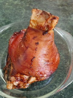今晚小女兒回來吃飯, 我煮了元蹄。元蹄用鹽和紹酒醃過夜, 然後用airfryer來烤至表面金黃, 再用壓力煲來煲45分鐘, 調味料是日本面豉醬、蠔油、紹酒和幾片香葉(bay leaf)。