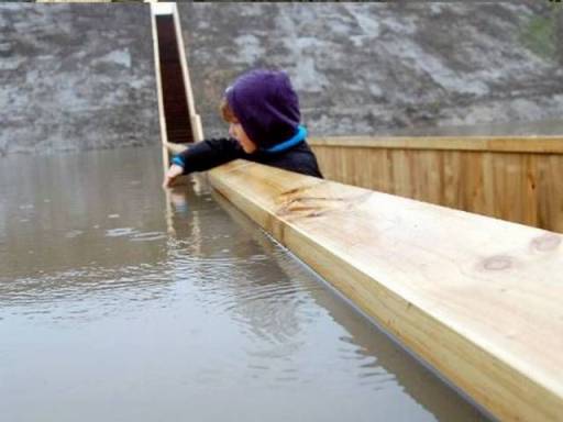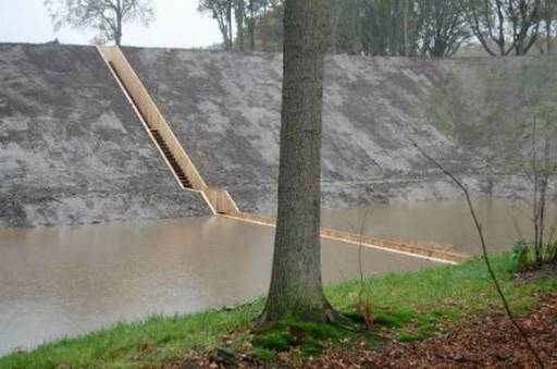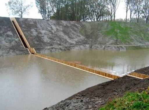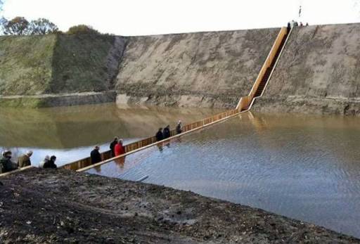 for a sunken bridge. Like a dam, the walls of the bridge hold the waters of the