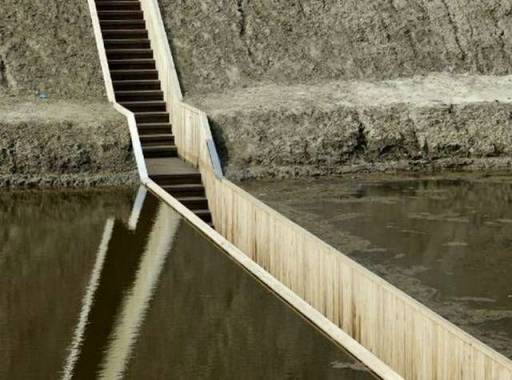 the earth, the bridge then descends deeper into the ground. Lined with wood