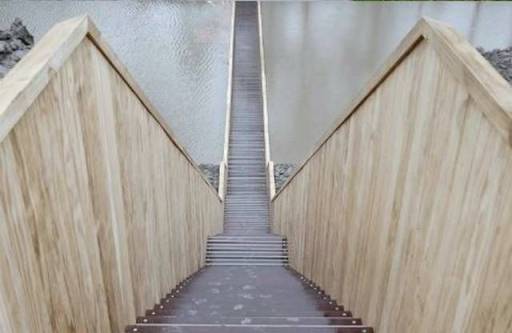sheet piling for walls, the deck and stairs sit between. The bridge and its